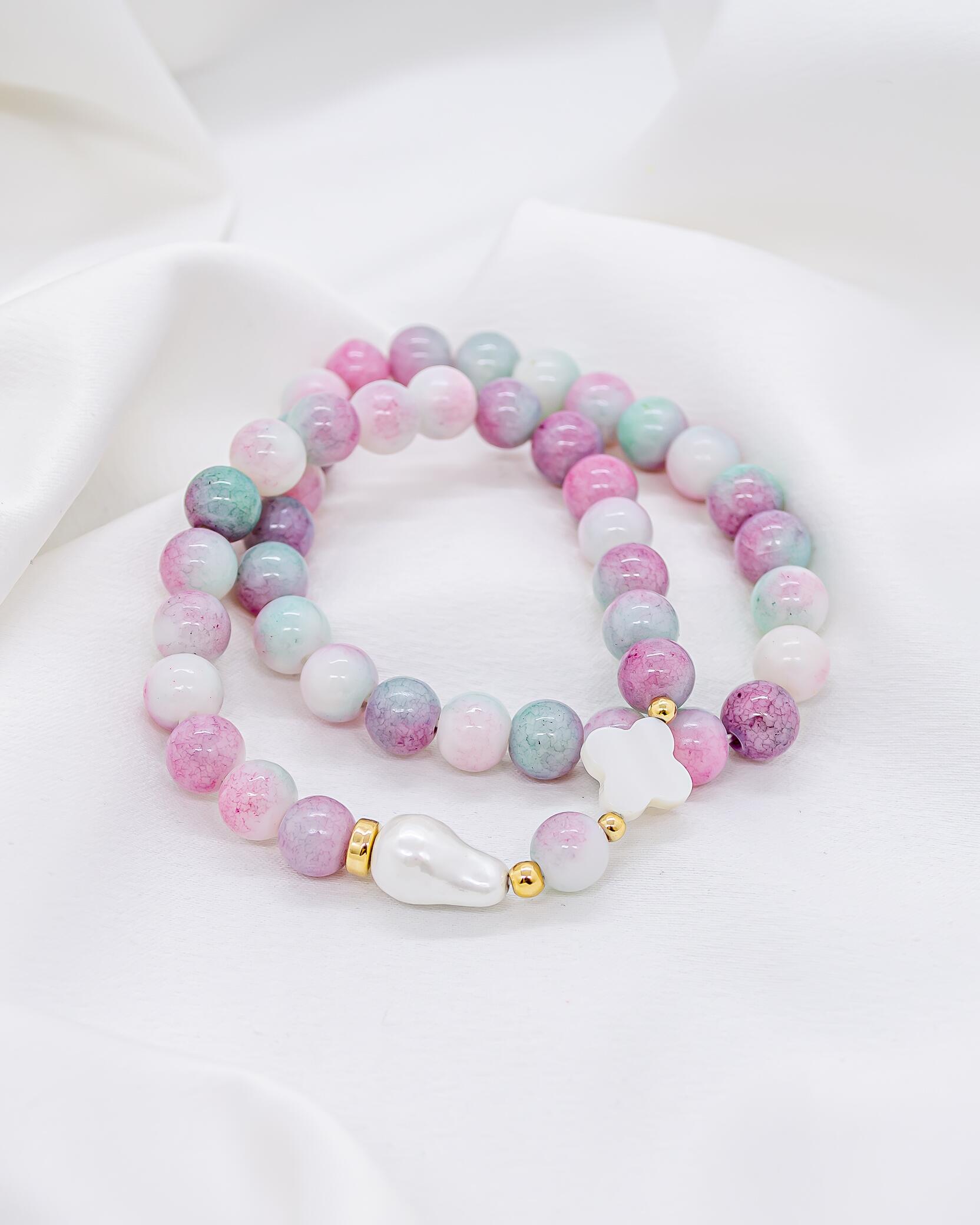 Adicione um toque de sofisticação e bem-estar ao seu dia a dia com a Pulseira Dupla de Pedra Natural Jade Rosa. Um acessório que não só embeleza, mas também traz boas energias para a sua vida!